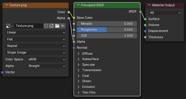 Please ensure your material nodes only contain Principled BSDF and necessary texture nodes, otherwise the export format and game engines may not correctly recognize or import your textures.